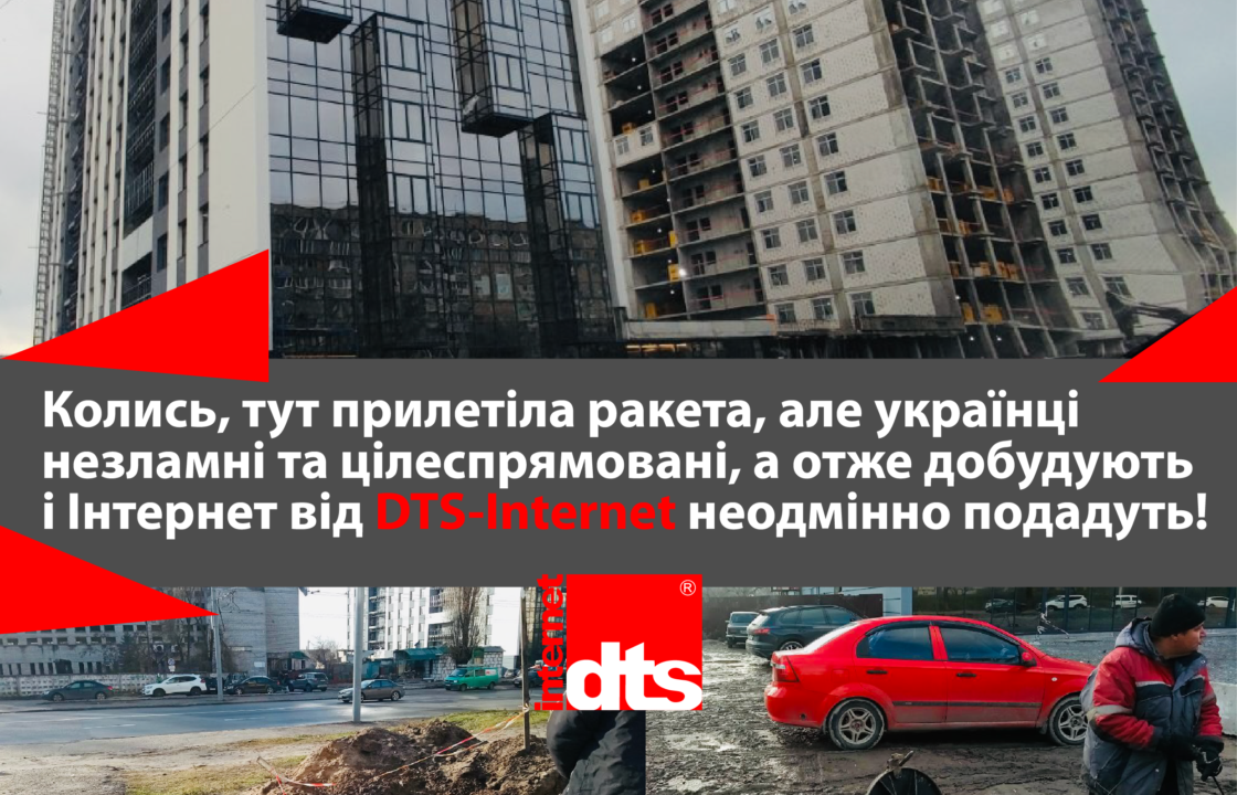 Когда-то здесь прилетела ракета, но украинцы несокрушимые и целеустремленные, а значит все достроят и Интернет от DTS-Internet непременно подадут! Ну, …