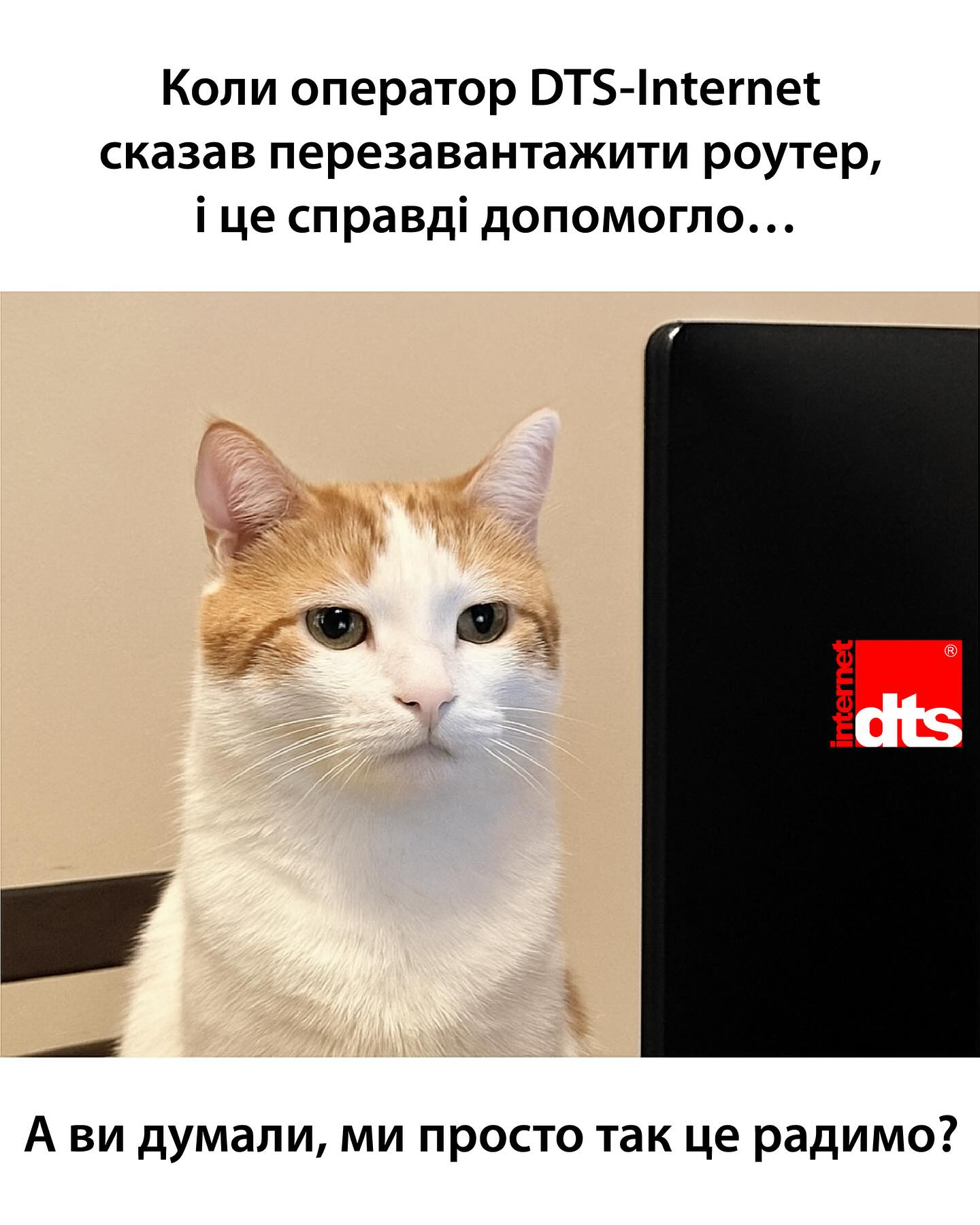 Новини04.04.2025 “Коли оператор DTS-Internet сказав перезавантажити роутер, і це справді допомогло…” А ти думав, ми просто так це радимо? Share